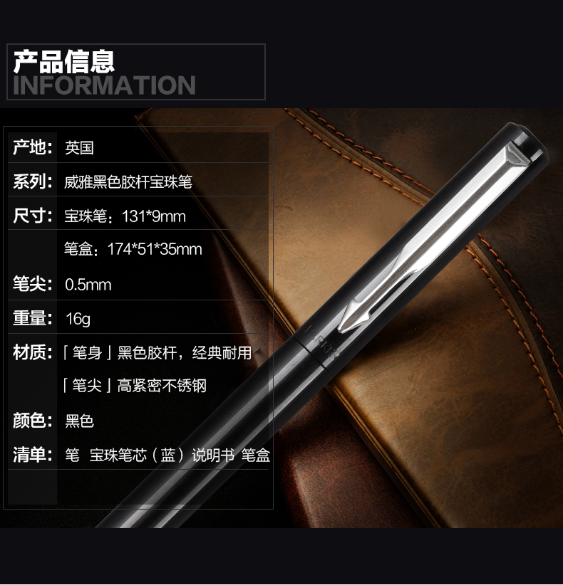 商品名称:Parker/派克 威雅胶杆宝珠笔黑色 签字笔学生练字商务办公送礼 原装进口