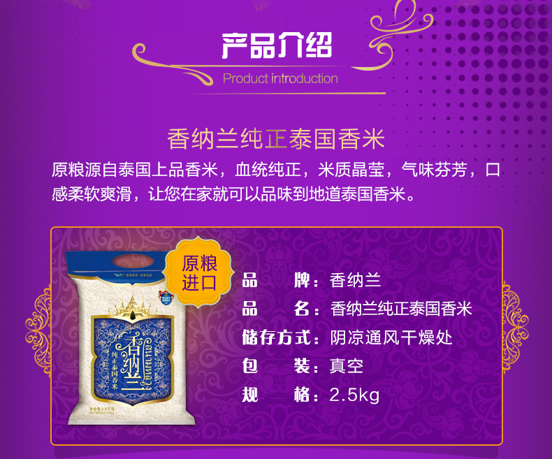 商品名称:香纳兰 纯正泰国香米2.5kg 原粮进口 泰米 泰国香米