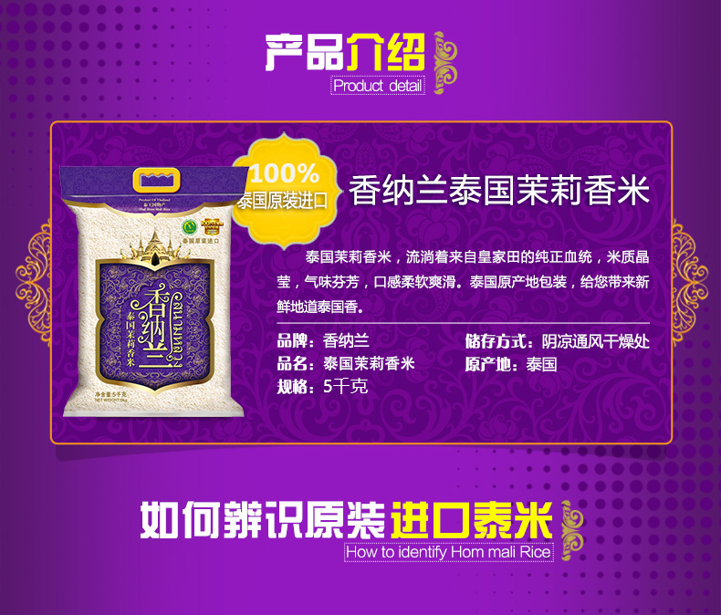 商品名称:香纳兰 5kg 泰国茉莉香米