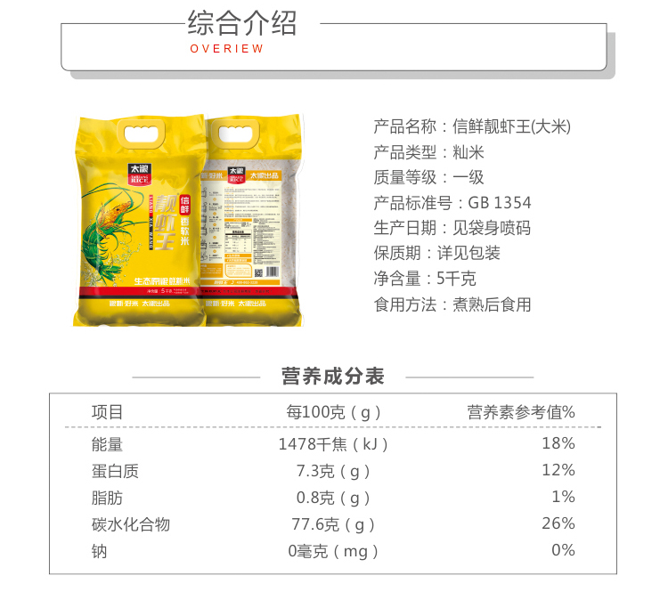 商品名称:太粮靓虾王信鲜油粘米5KG/袋软香米南方籼米大米 非东北米珍珠米