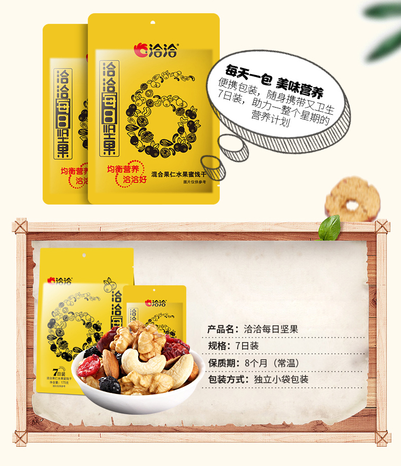 商品名称:洽洽 每日坚果恰恰混合坚果7包装混合果仁果干成人款综合零食175g