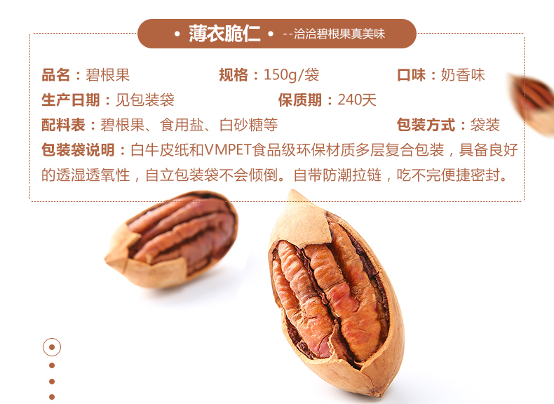 商品名称:恰恰 碧根果奶香味坚果休闲零食150g*2袋