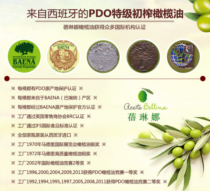 商品名称:蓓琳娜/BELLINA PDO特级初榨橄榄油1000m l 西班牙原装进口