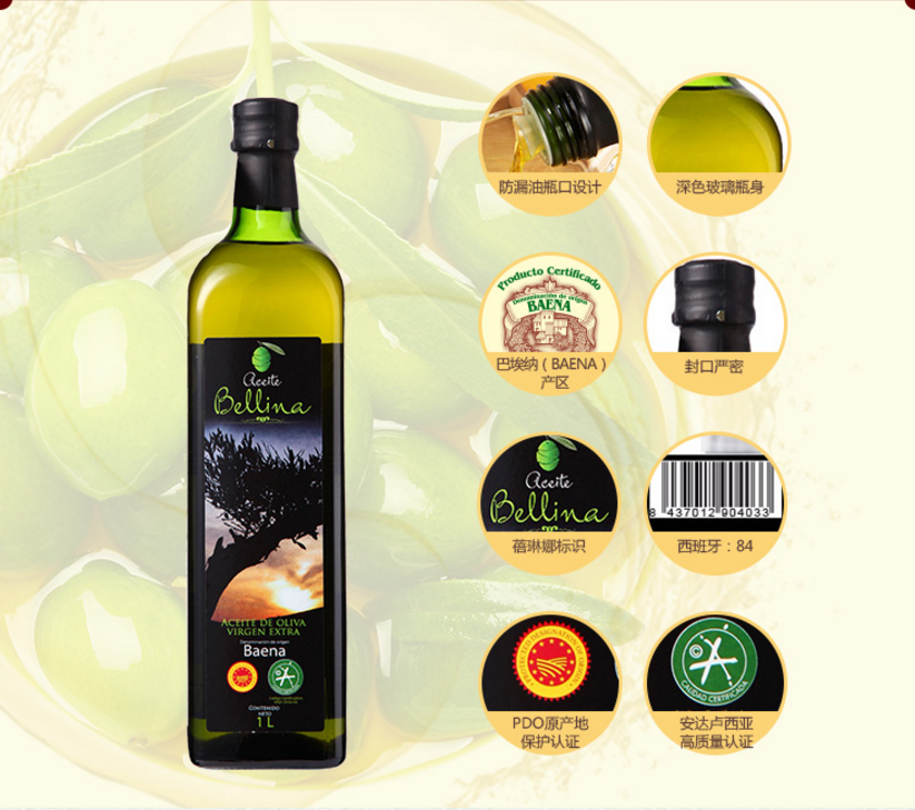 蓓琳娜/BELLINA PDO特级初榨橄榄油1000m l 西班牙原装进口