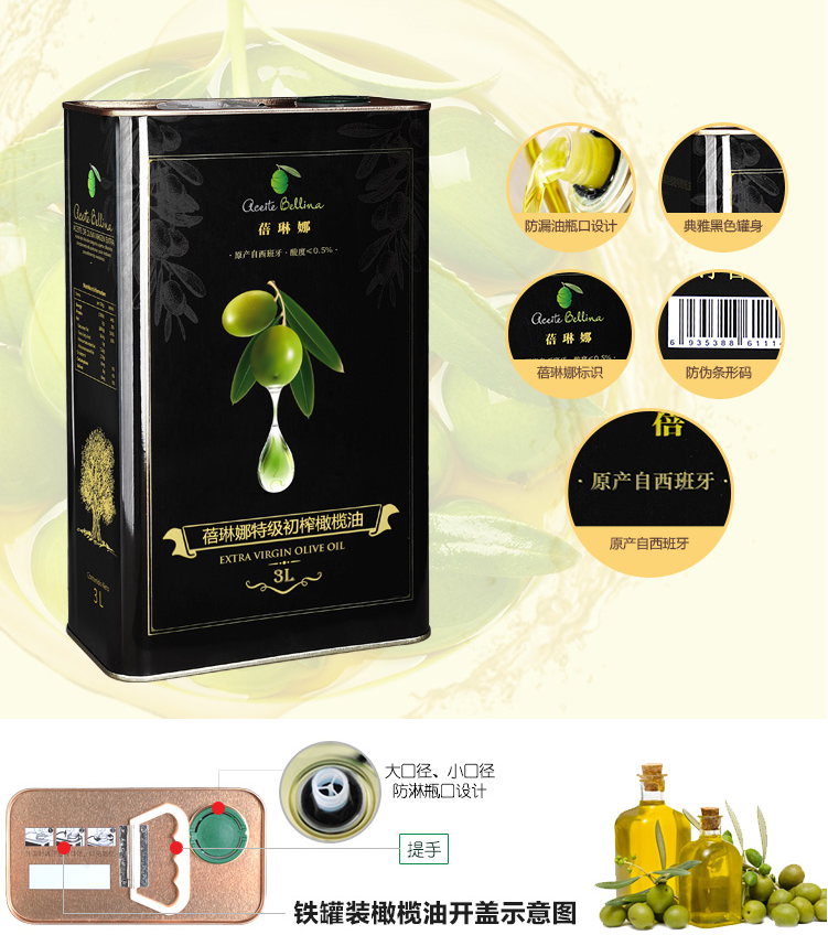 商品名称:蓓琳娜/BELLINA 特级 初榨 橄榄油 3L 西班牙进口