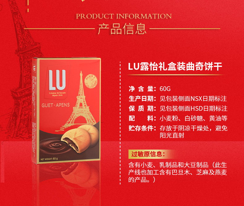 商品名称:LU/露怡 饼干香浓巧心曲奇饼干60g美味饼干好享受新年礼盒