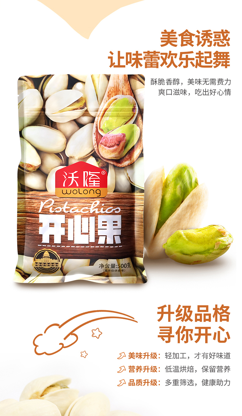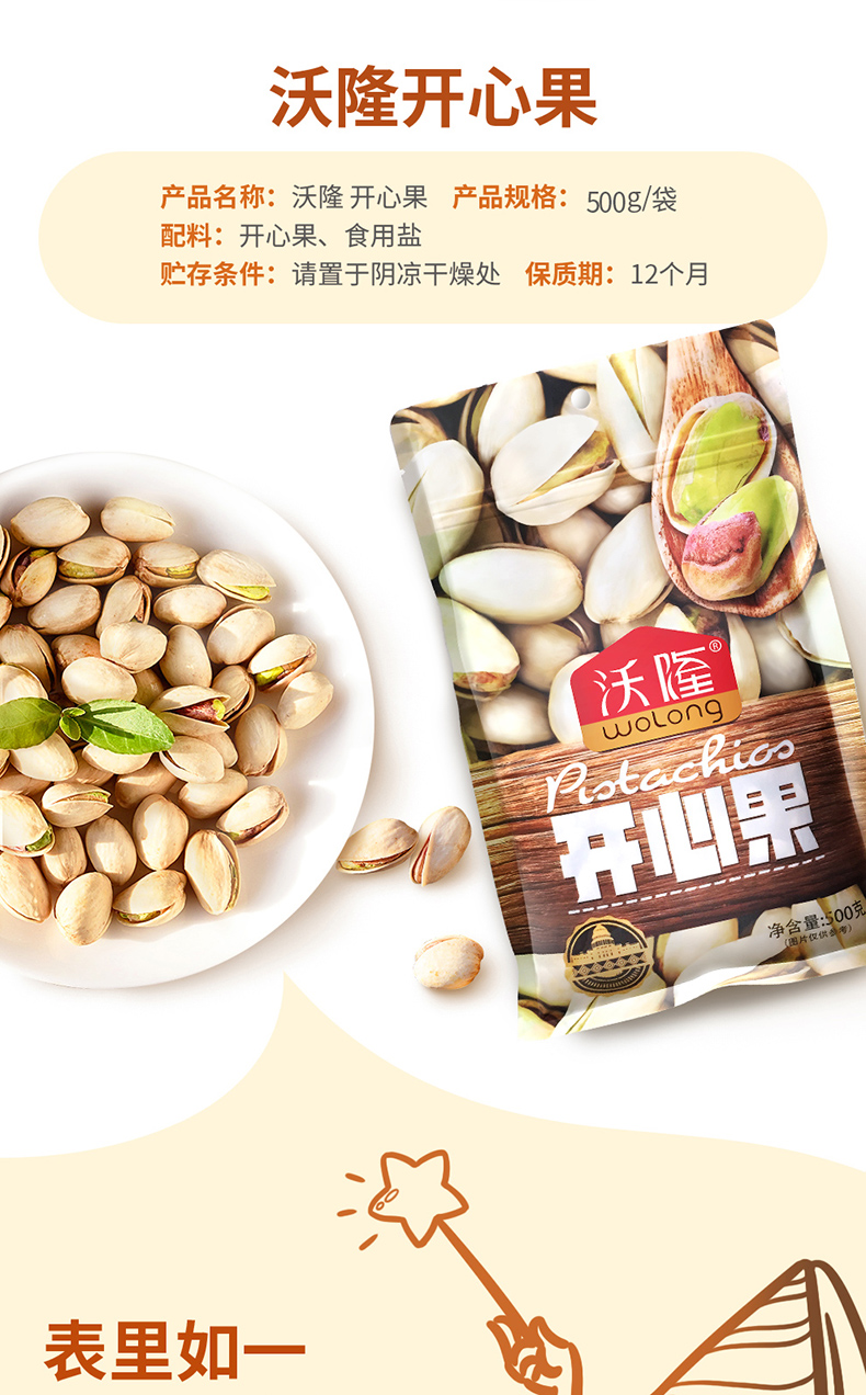商品名称:沃隆 开心果500gx1袋 原味无漂白天然孕妇坚果零食炒货特产
