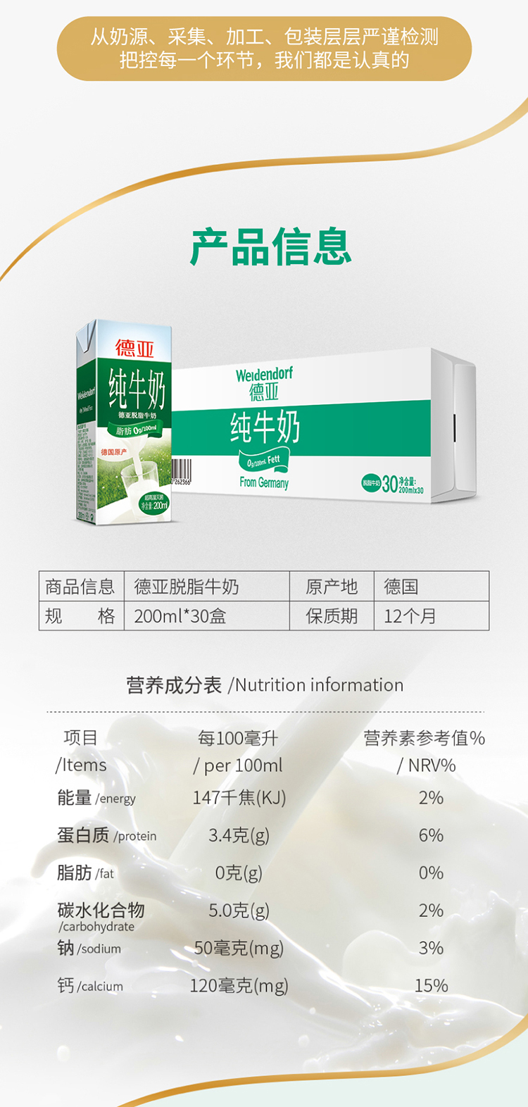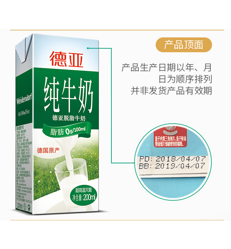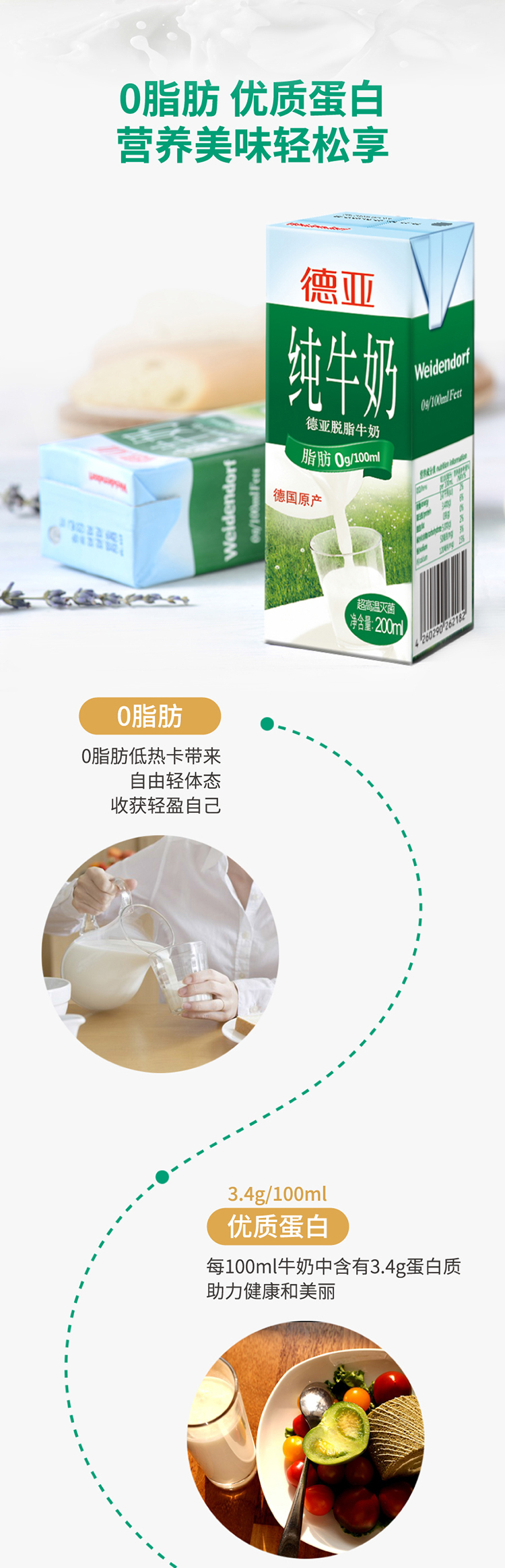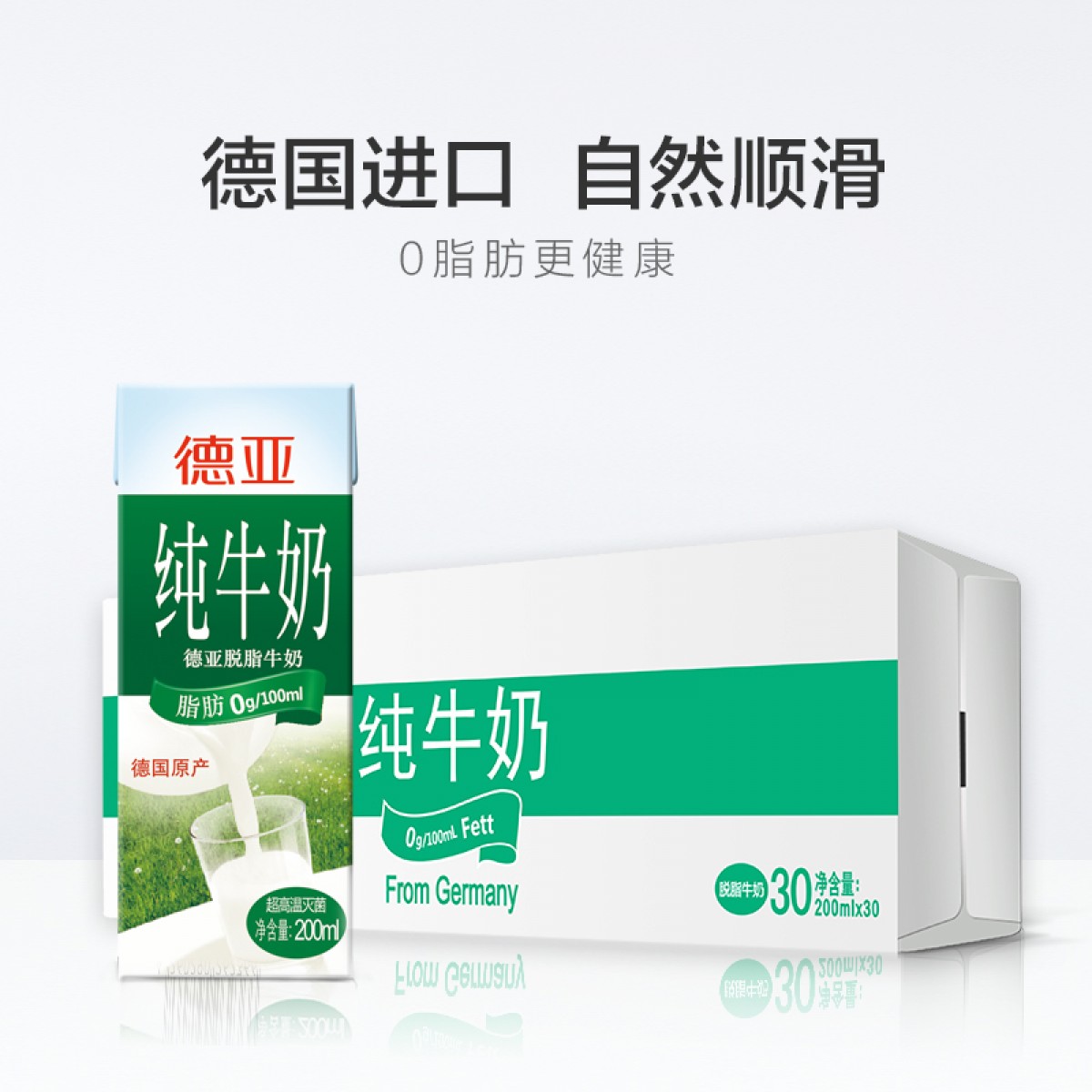 商品名称:德亚 脱脂牛奶纯牛奶200ml*30盒整箱装