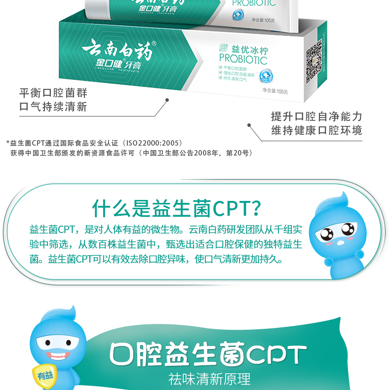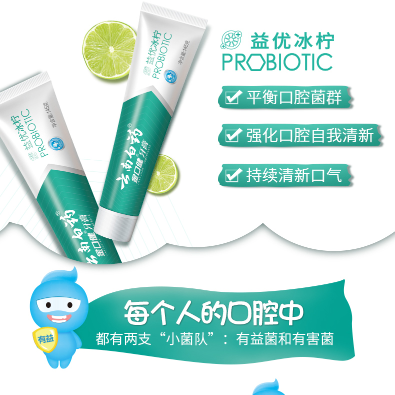 商品名称:云南白药 牙膏益优清新105g/145g(冰柠薄荷)清新口气口腔异味