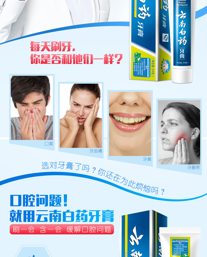 云南白药牙膏 薄荷香型 缓解口腔问题 养护牙龈 保护牙齿 清口气
