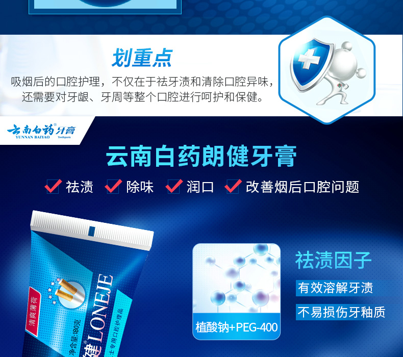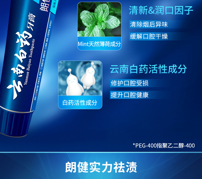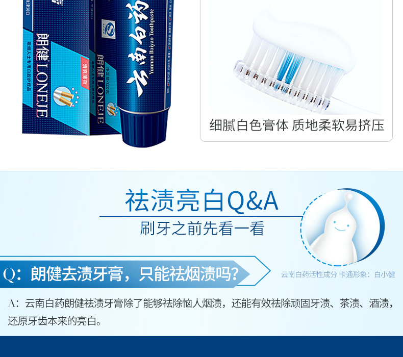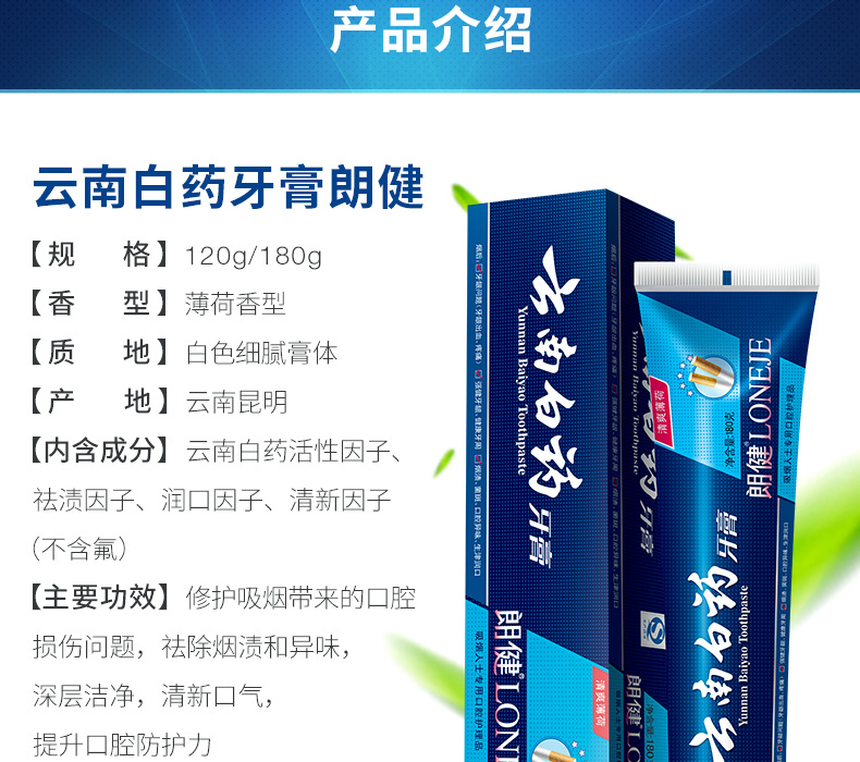 商品名称:云南白药 朗健牙膏清爽薄荷120g/180g去口气烟渍牙渍牙垢牙黄美白