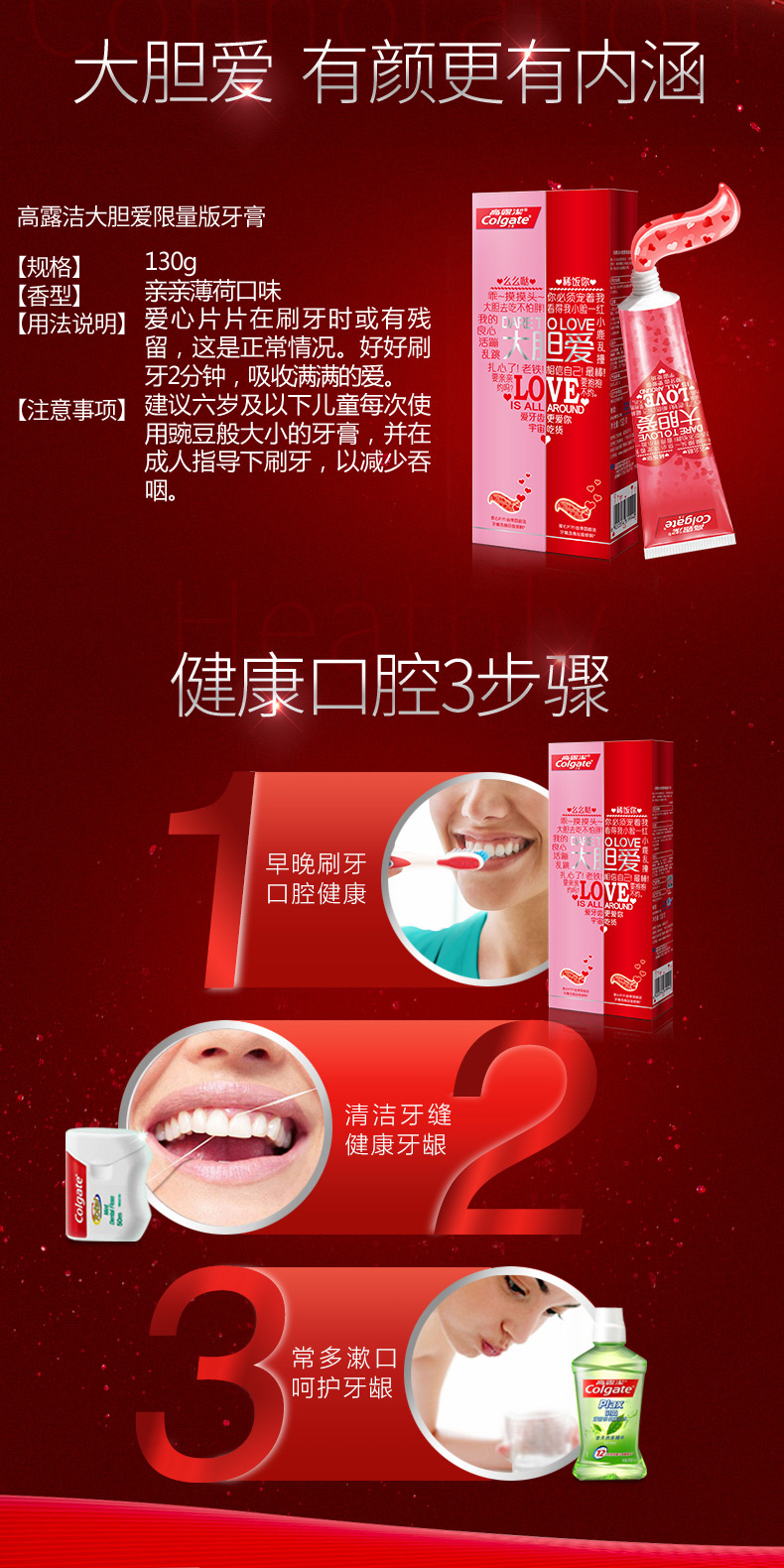 商品名称:高露洁 爱心告白礼盒大胆爱牙膏 金妆奖人气单品130g*2