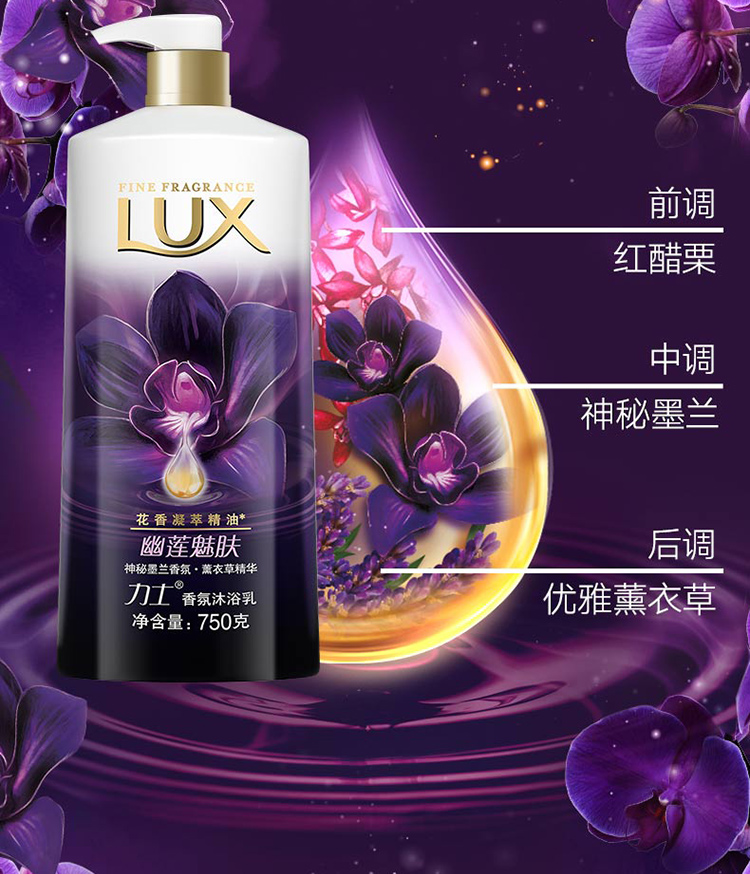 商品名称:力士/LUX 精油香氛沐浴露/乳 幽莲魅肤/花香凝萃 留香男女750g