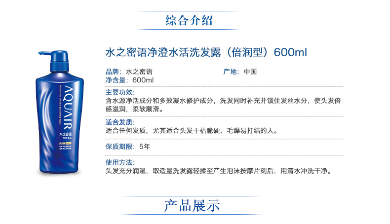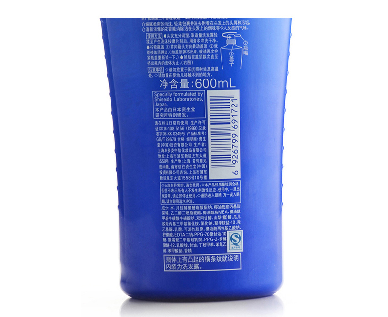 商品名称:资生堂 水之密语净澄水活洗发露倍润型 600ml 滋润补水