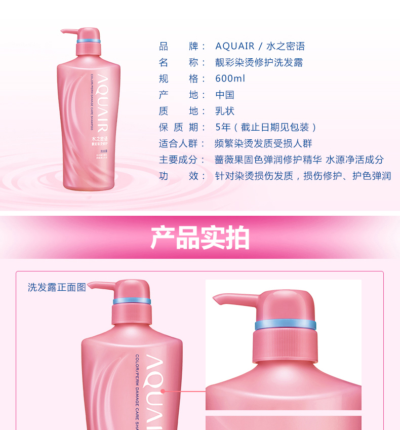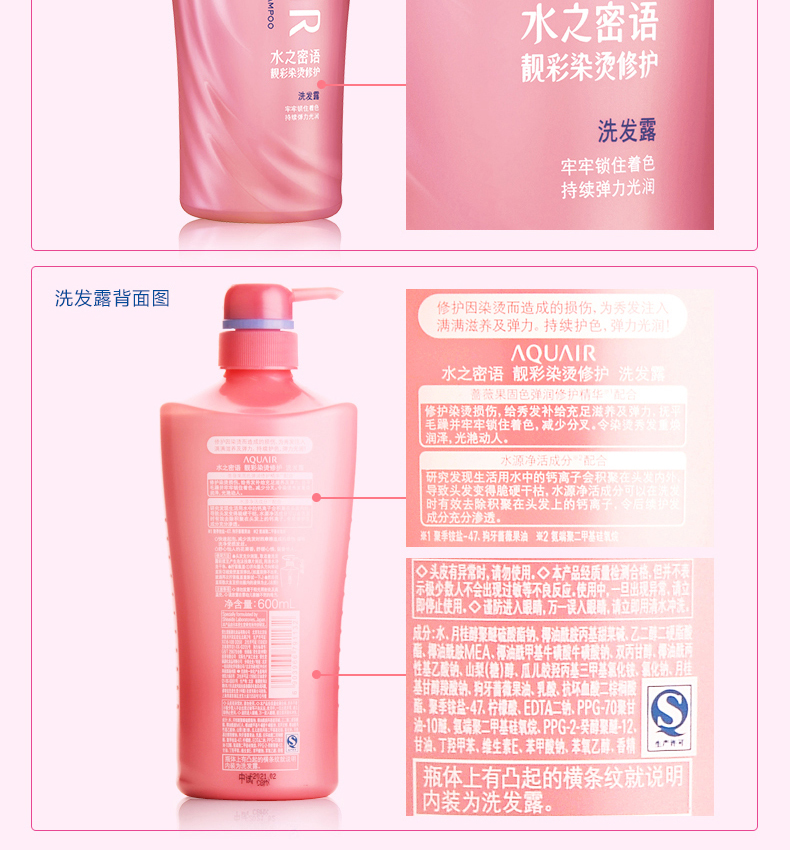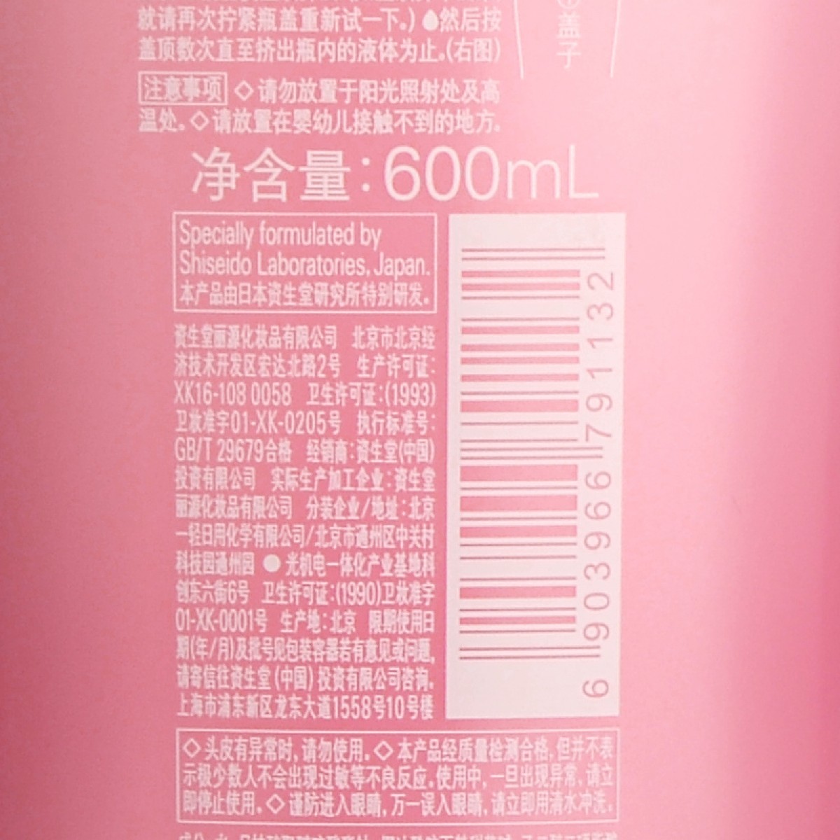 商品名称:资生堂 水之密语靓彩染烫修护洗发露600ml*1瓶烫染秀发修护洗发水