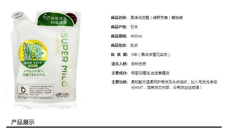 商品名称:资生堂 惠润柔净洗发露绿野芳香替换装400ml*2袋洗发水