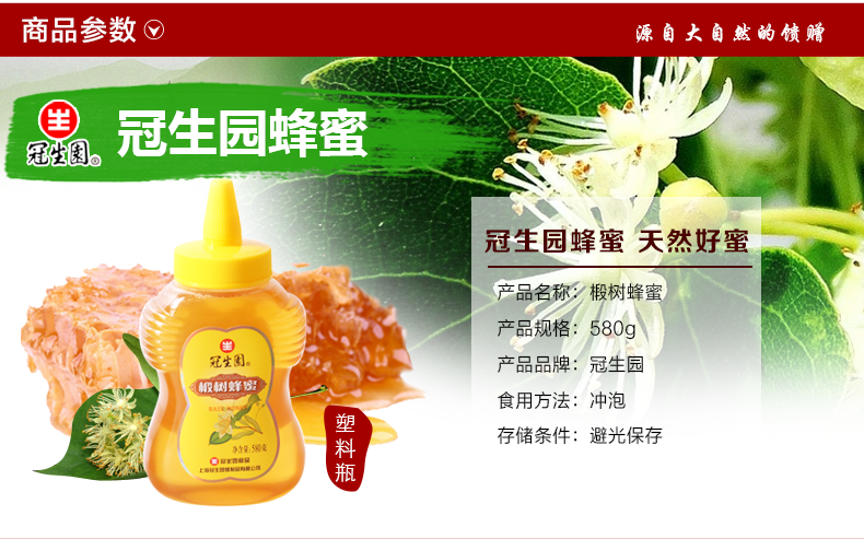 商品名称:冠生园 蜂蜜580g瓶椴树蜂蜜雪蜜 土蜂蜜上海特产冲调