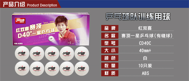 商品名称:红双喜 乒乓球10只装一星球乒乓球赛顶 比赛训练有缝乒球