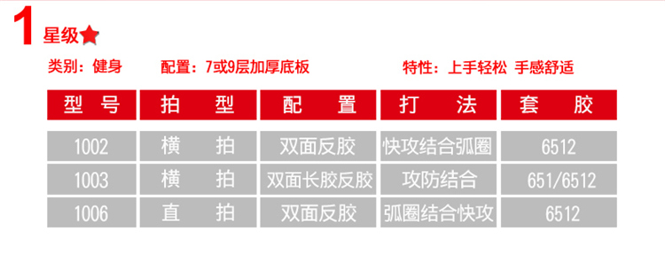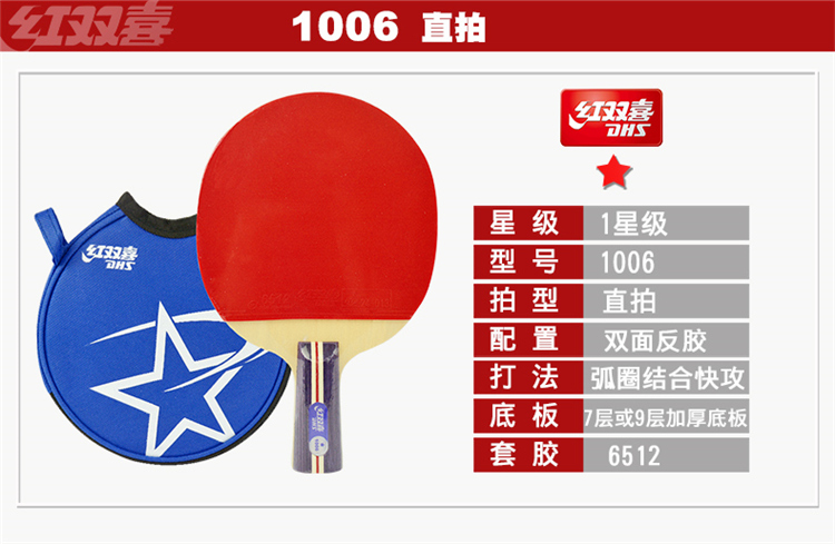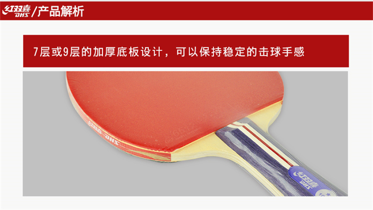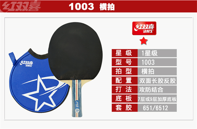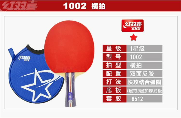 商品名称:红双喜 1星级乒乓球拍横拍 1002 双面反胶横拍 7层木乒乓拍