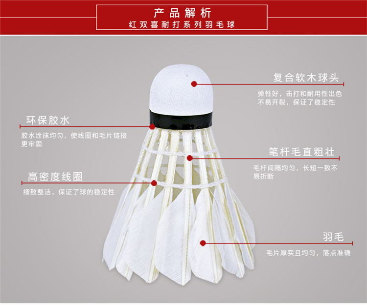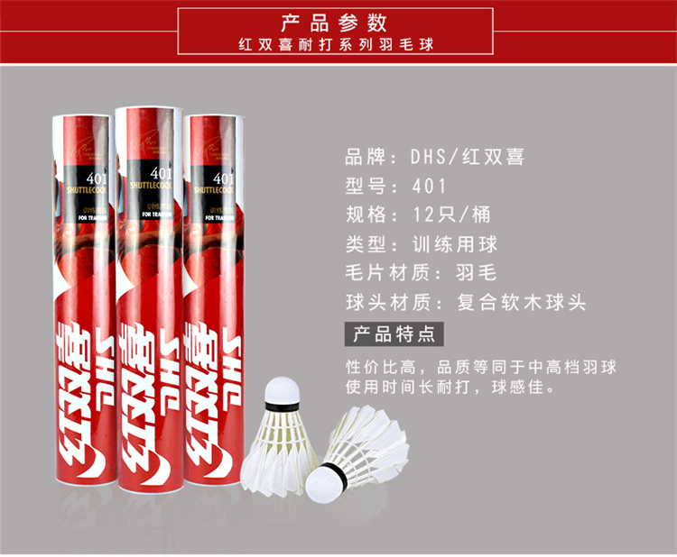 商品名称:红双喜 羽毛球 鹅毛 401羽毛球(12只) 稳定耐打 室外用