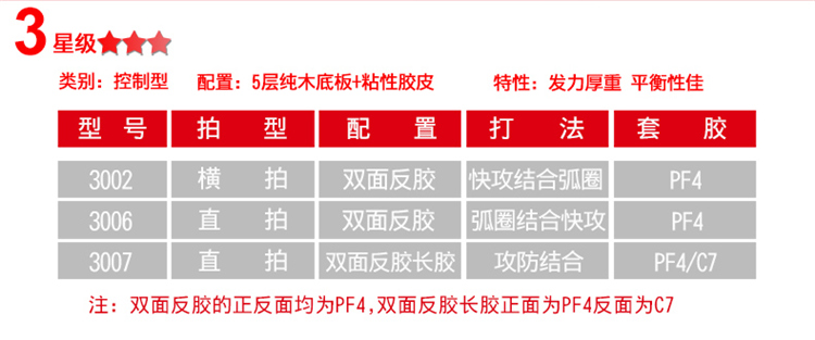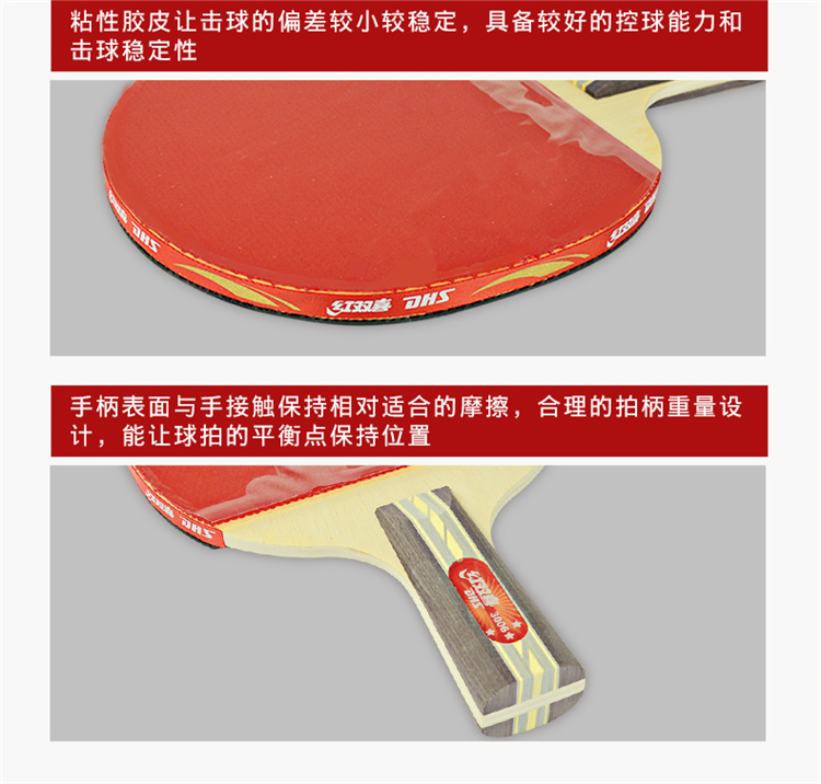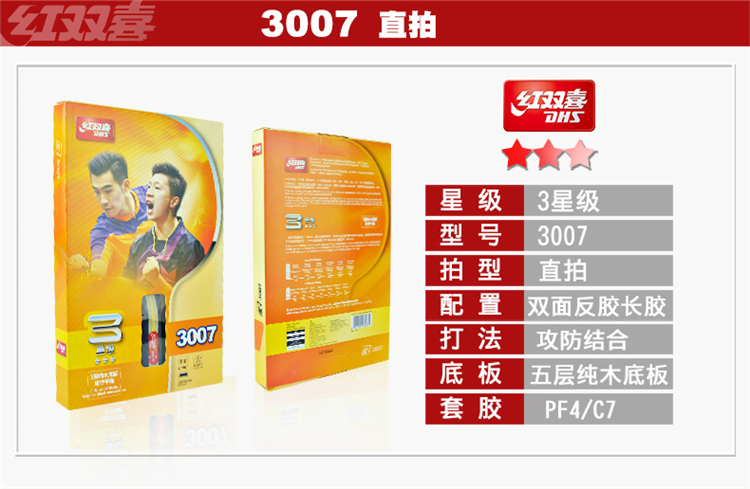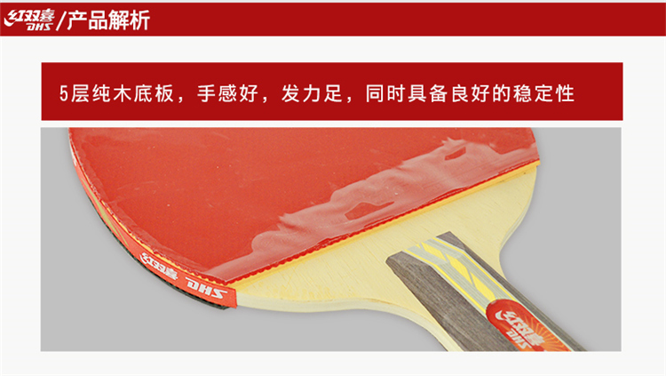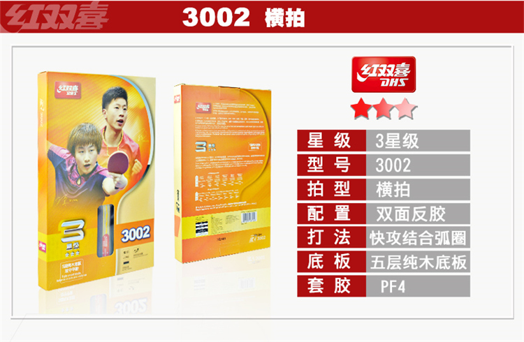 商品名称:红双喜 3星乒乓球拍直拍A3002 双面反胶横拍 正胶5层木底板