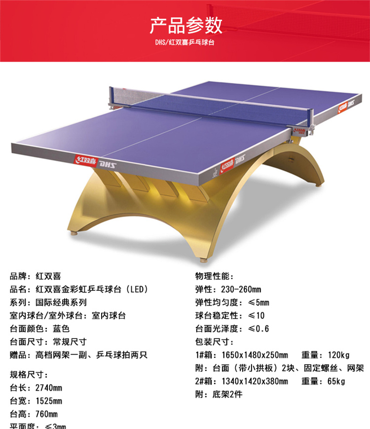 商品名称:DHS/红双喜金彩虹乒乓球台国际大型比赛室内乒乓球台LED灯