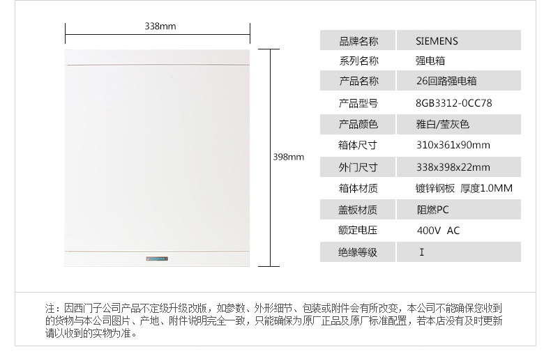 商品名称:西门子 家用配电箱 空气开关强电箱 暗装白色照明配电箱 26回路