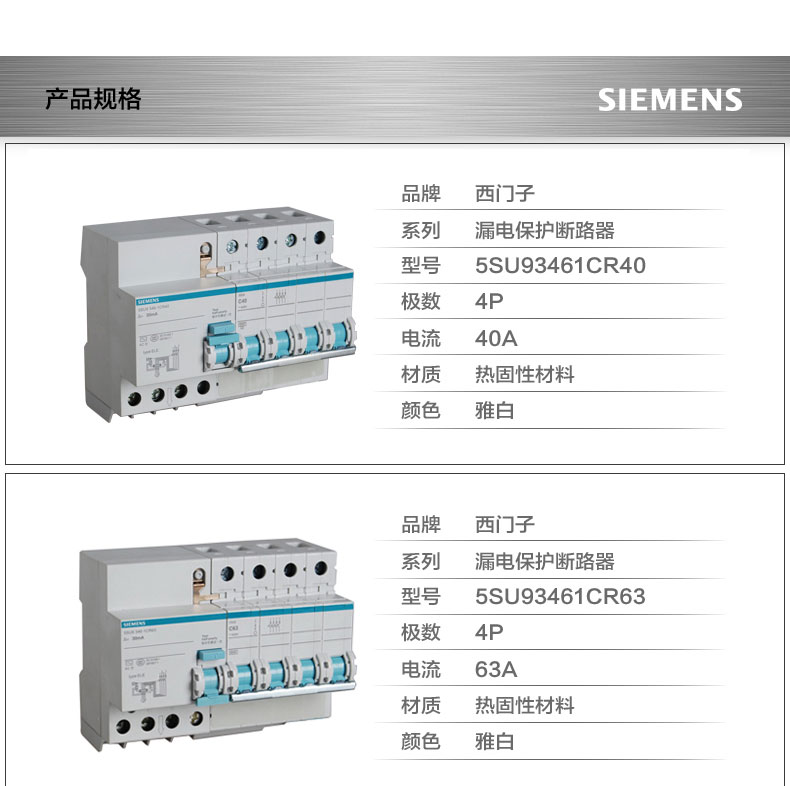 商品名称:西门子 4P漏电保护器40A漏保 5SU93461CR40