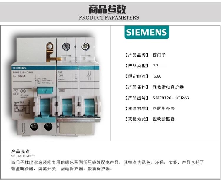 商品名称:西门子 漏电保护器 2P 63A 5SU93261CR63