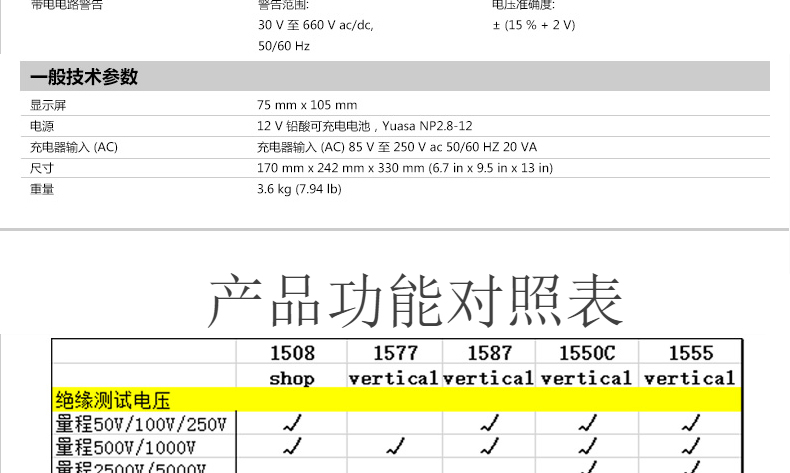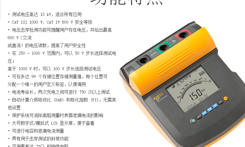 商品名称:福禄克 绝缘电阻测试仪高压兆欧表 F1555 1550C