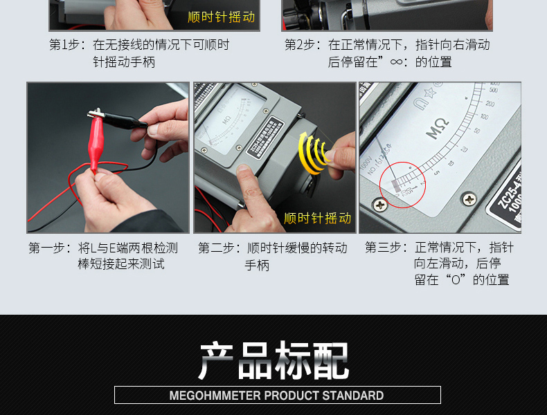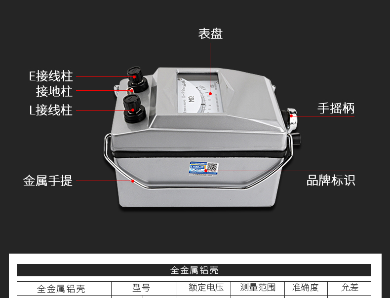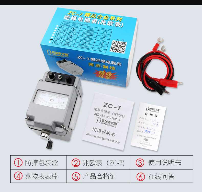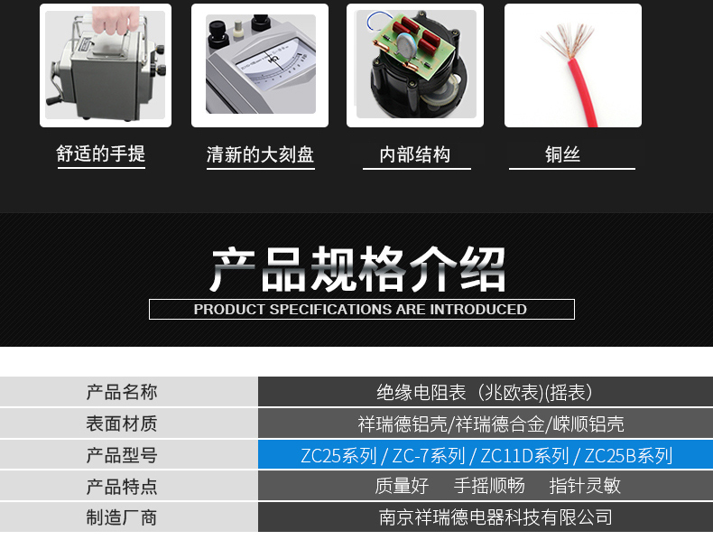 商品名称:祥瑞德 摇表500v兆欧表1000v绝缘电阻测试仪2500v 电工电阻表 ZC25-3