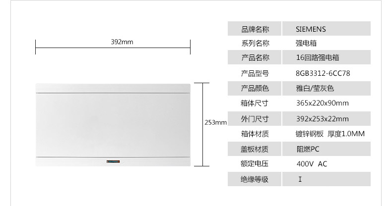 商品名称:西门子 家用配电箱 空气开关强电箱 暗装白色照明配电箱 16回路