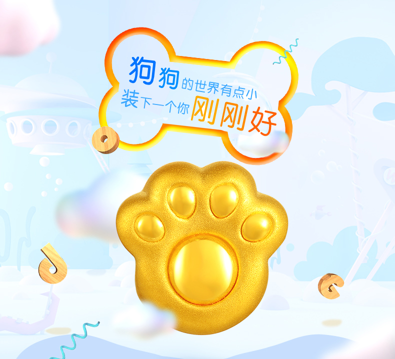 中国黄金 黄金转运珠0.89g生肖狗小狗爪足金吊坠串珠珠宝首饰