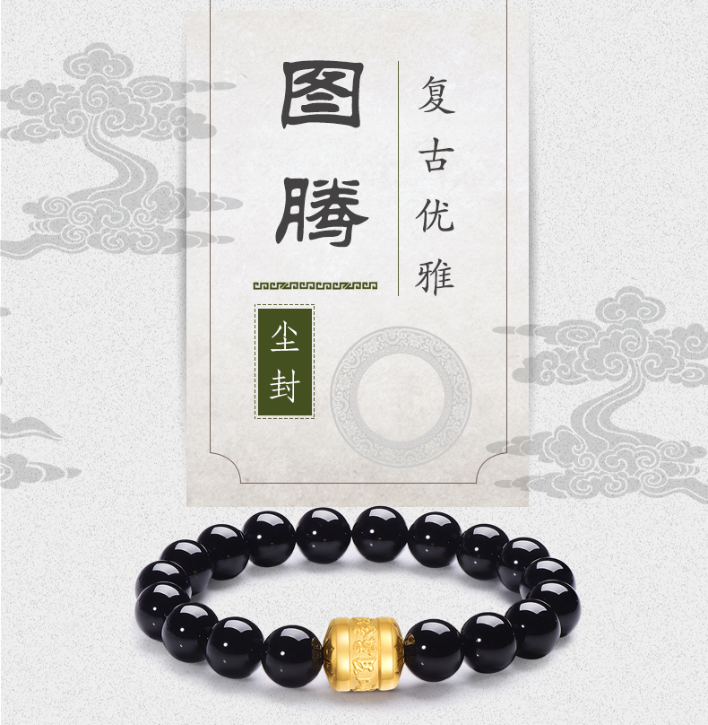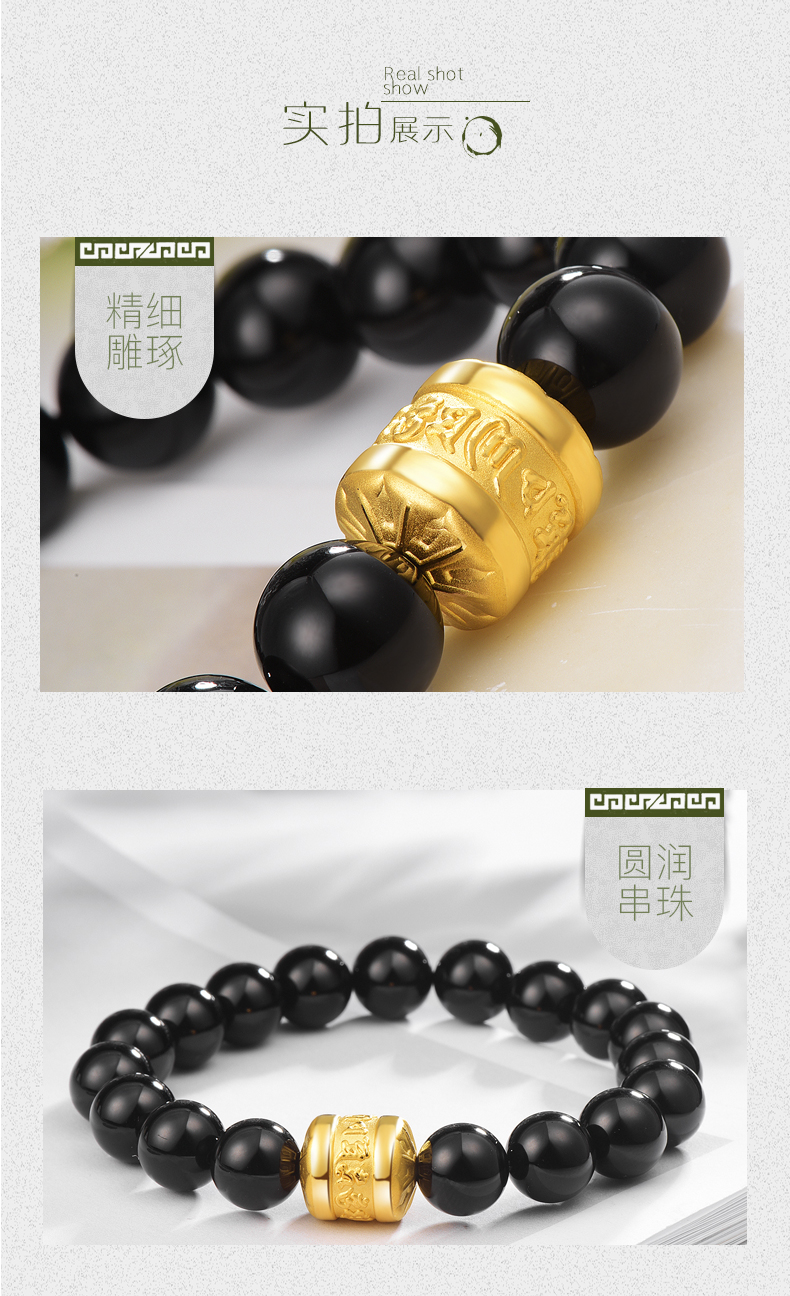 明牌珠宝 黄金手链 足金3D硬金转经筒手串男士手链AFP0134 定价