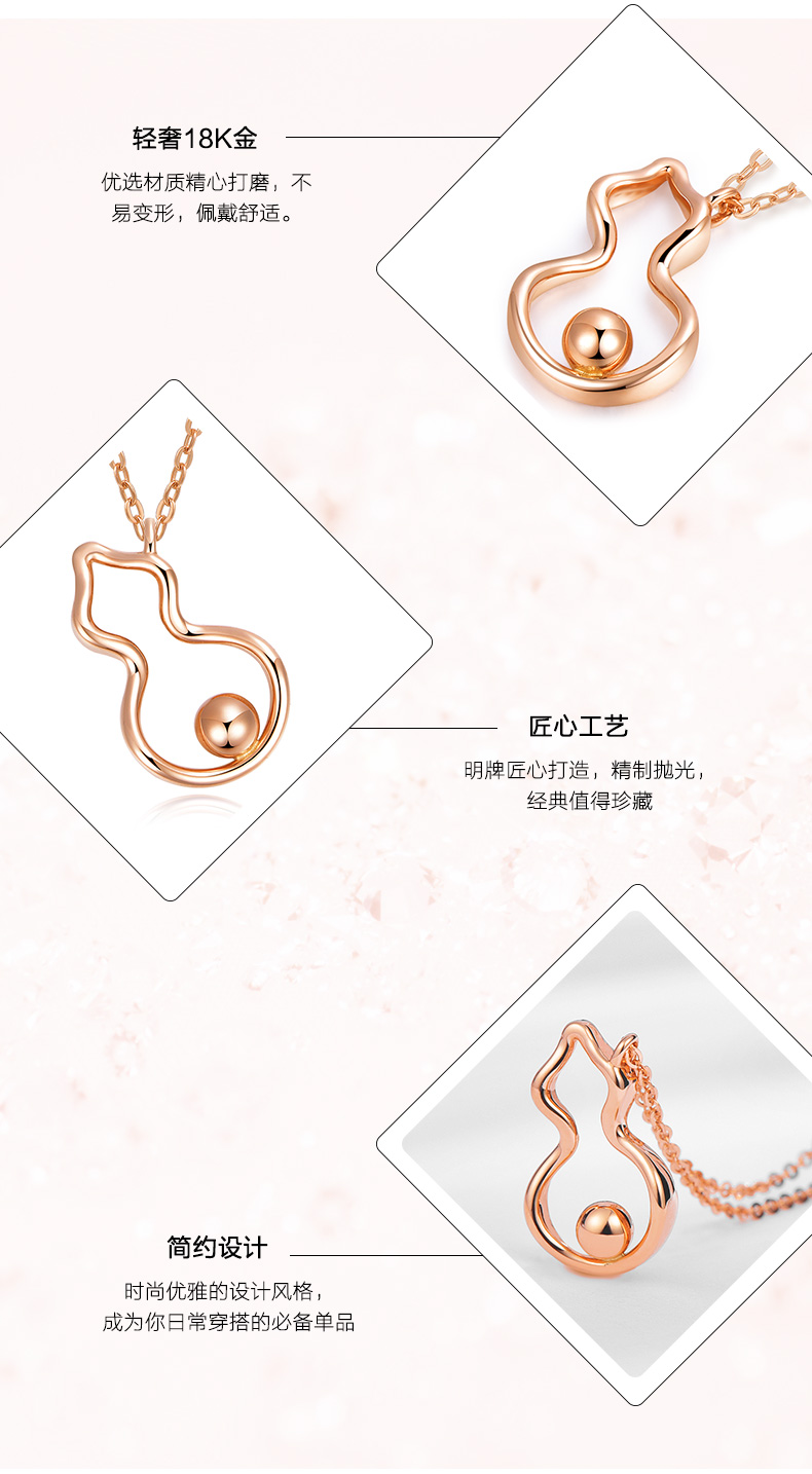 商品名称:明牌珠宝 18K金项链 彩金玫瑰金葫芦摩登吉福项链CSR0081