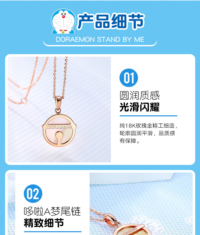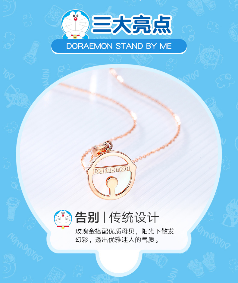 商品名称:潮宏基 哆啦A梦铃铛 红18k金贝壳坠链玫瑰金项链女 X Z