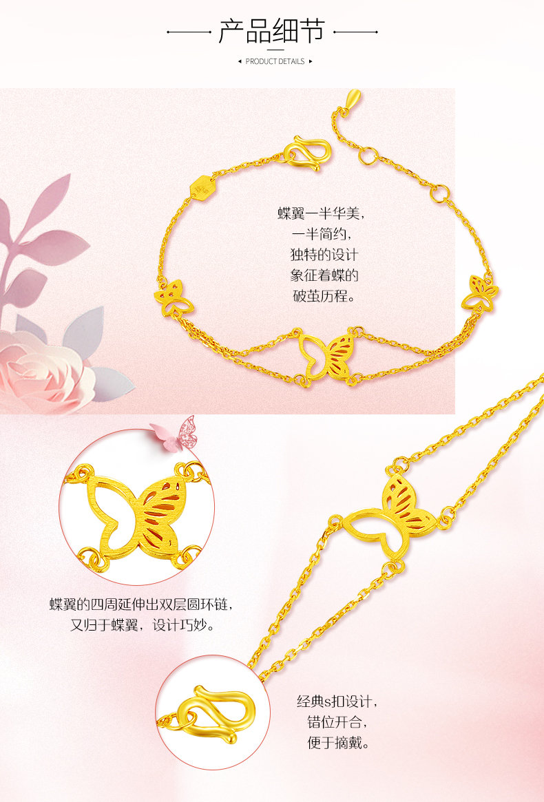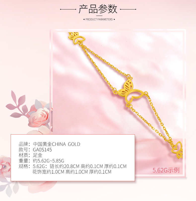商品名称:中国黄金 黄金手链蝴蝶蜕变金手链女足5.73g