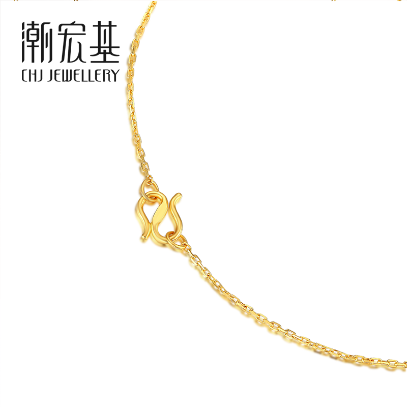 潮宏基 绫罗黄金项链女款足金锁骨链套链配链 2.35g