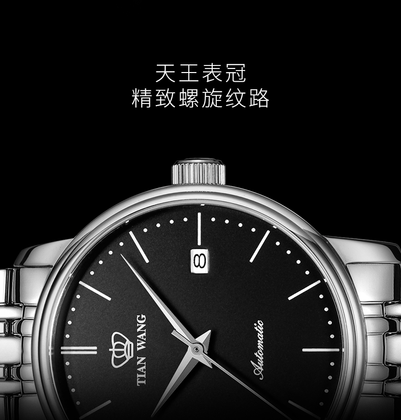 商品名称:天王表 机械表男钢带休闲时尚男士腕表防水GS5934S/D-B黑色表盘钢带