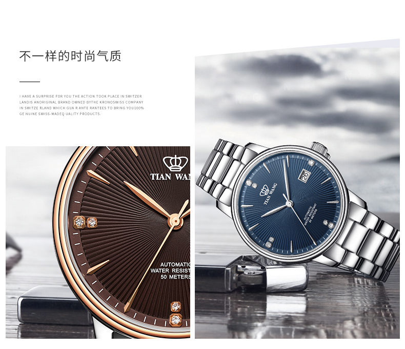 商品名称:天王表 男士钢带手表 自动机械防水时尚男表GS51002