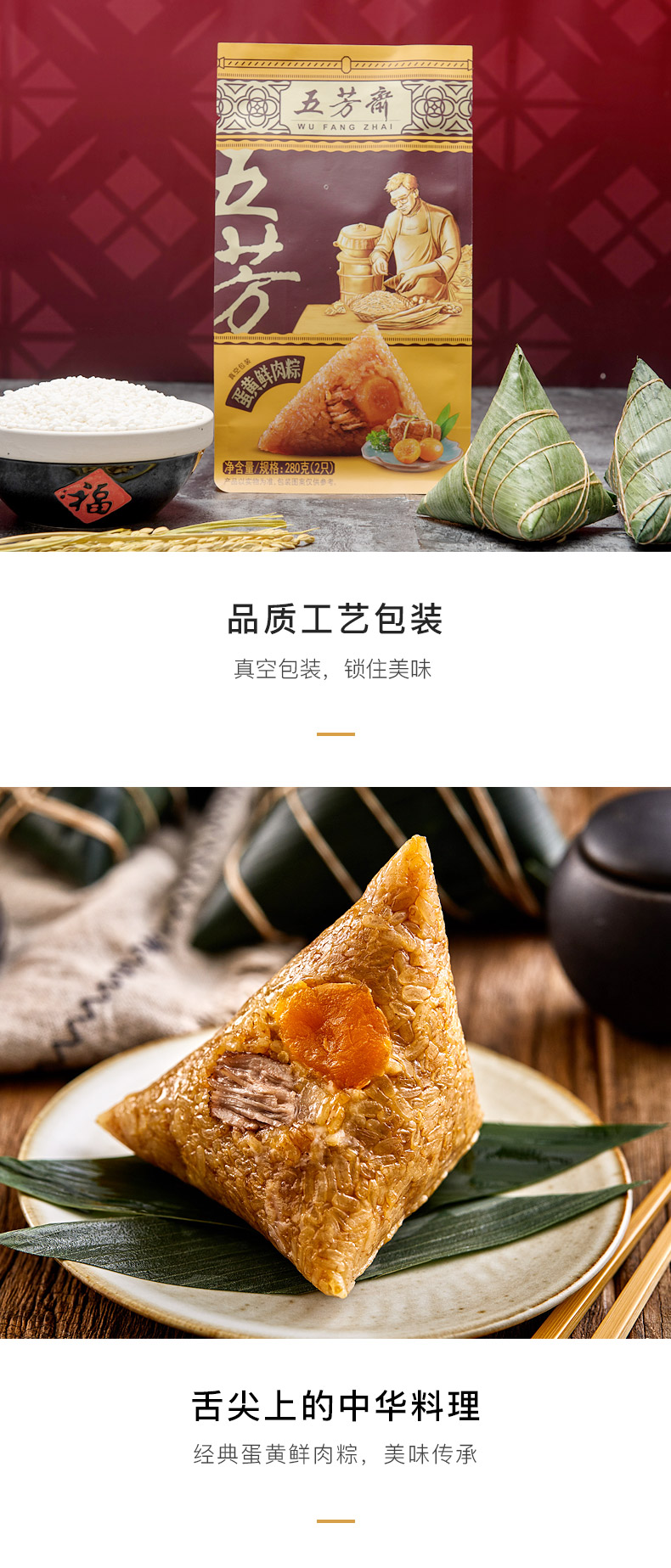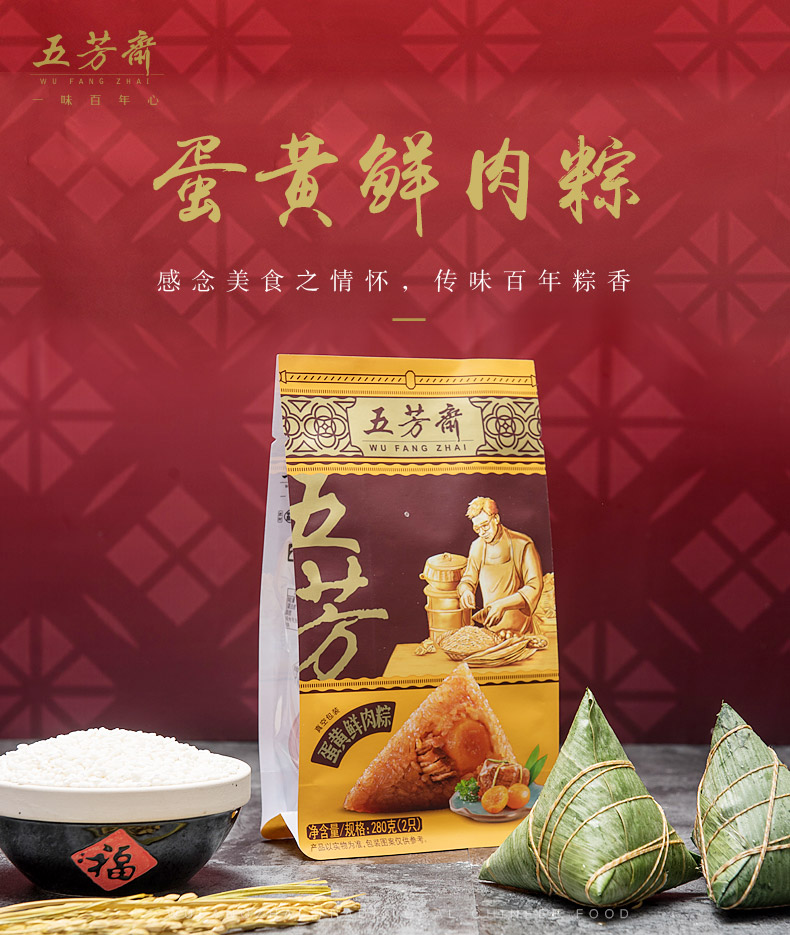 商品名称:粽子 五芳斋粽子 嘉兴粽子肉粽蛋黄粽 嘉兴特产蛋黄肉粽140g*6只