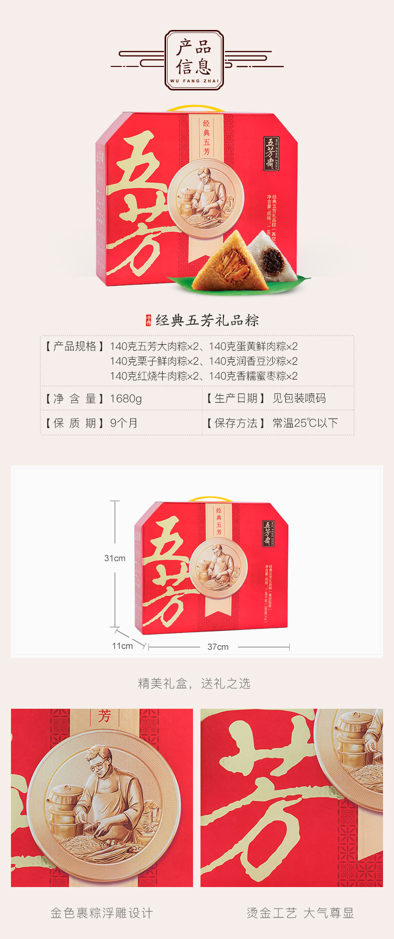 商品名称:五芳斋 粽子礼盒经典 蛋黄肉粽大肉粽大粽子蜜枣嘉兴特产端午礼品