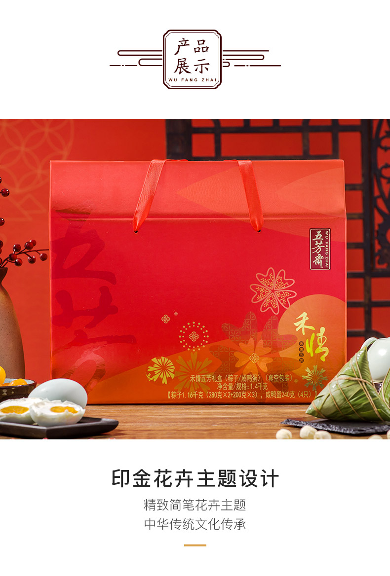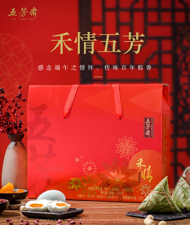 五芳斋 粽子礼盒禾情 蛋黄鲜肉粽豆沙粽蜜枣粽咸鸭蛋端午礼品团购