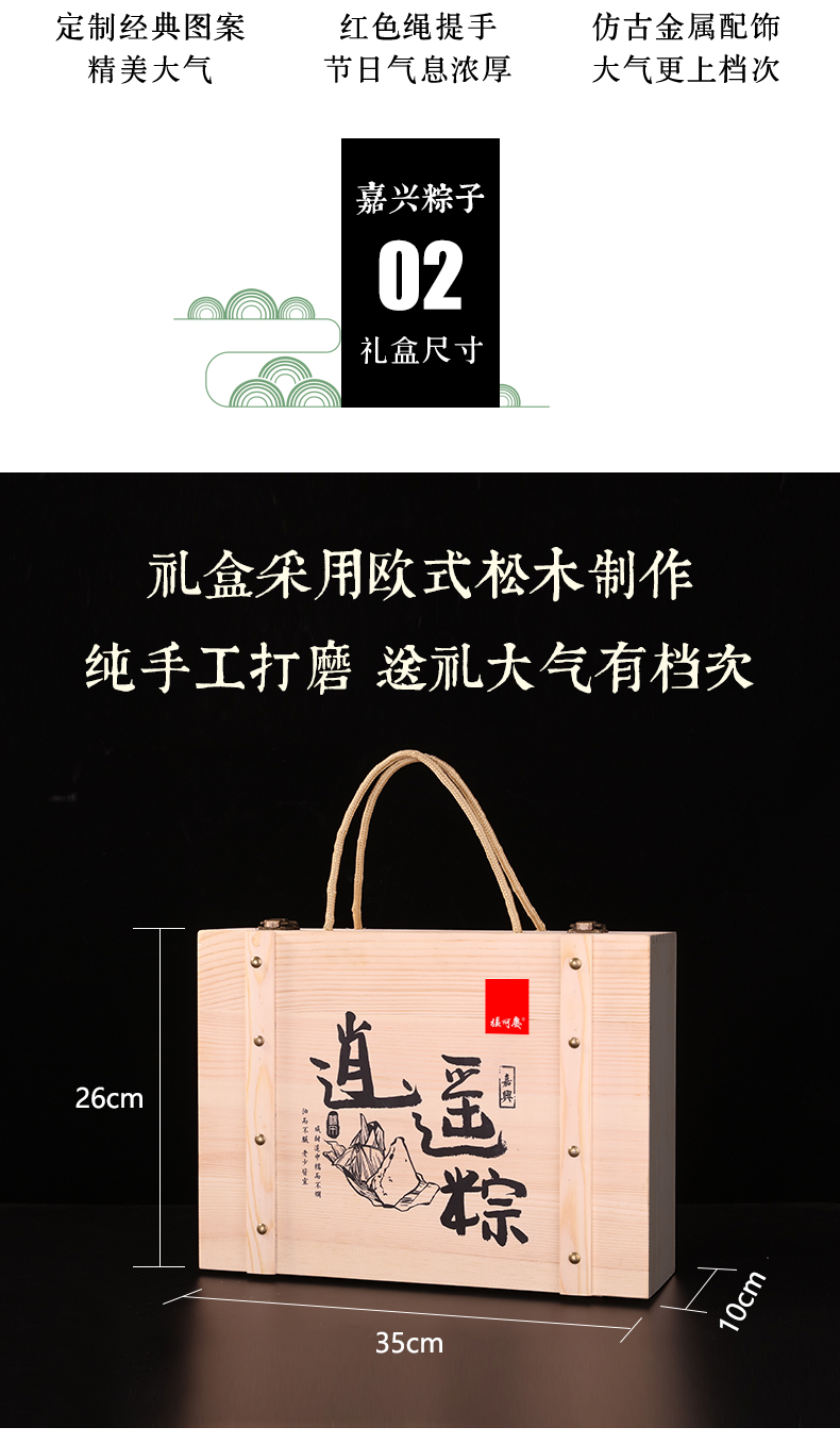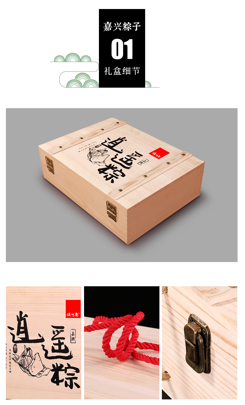 商品名称:张阿庆 端午节嘉兴粽子礼盒木质装双蛋黄鲜肉粽手工粽子团购批发