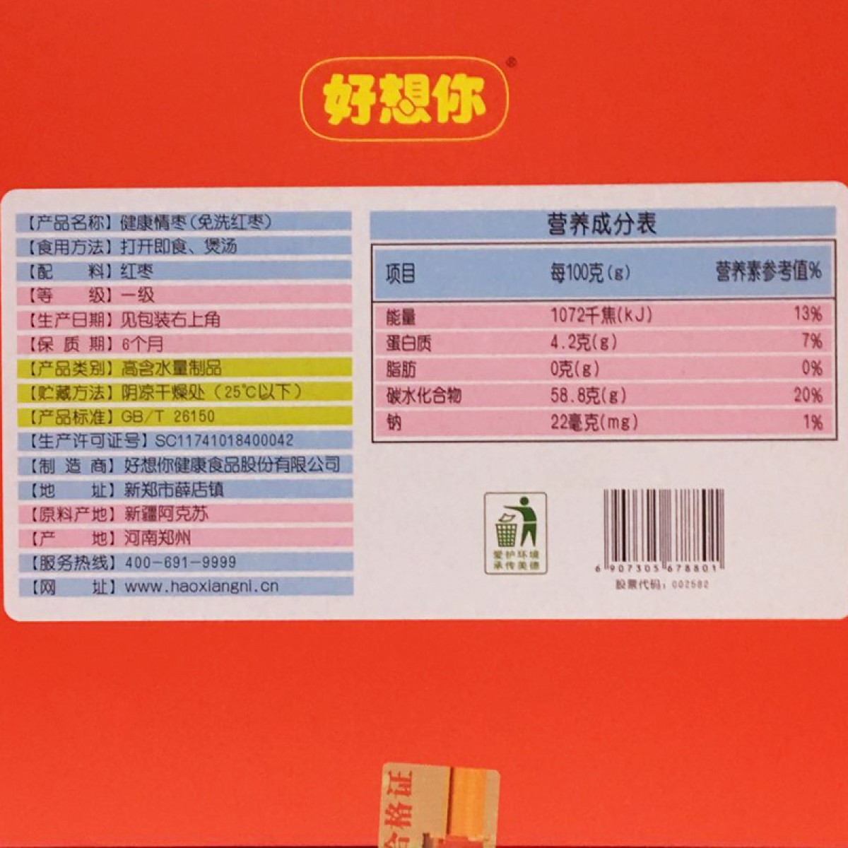 商品名称:好想你 红枣姐姐998g一级枣礼盒装红枣免洗即食灰枣子送礼特产零食