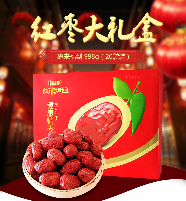 好想你 红枣姐姐998g一级枣礼盒装红枣免洗即食灰枣子送礼特产零食