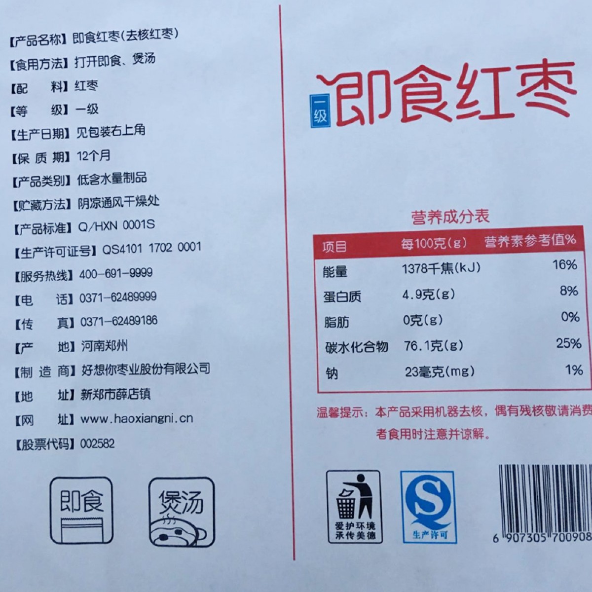 商品名称:好想你 红枣 无核即食枣500克一级红枣 新疆去核灰枣零食