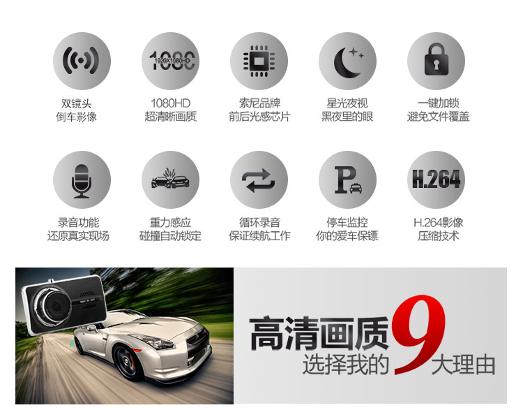 商品名称:智擎 ZH400 行车记录仪双镜头带电子狗高清夜视倒车影像隐藏式停车监控 4.0英寸 黑色 (台)