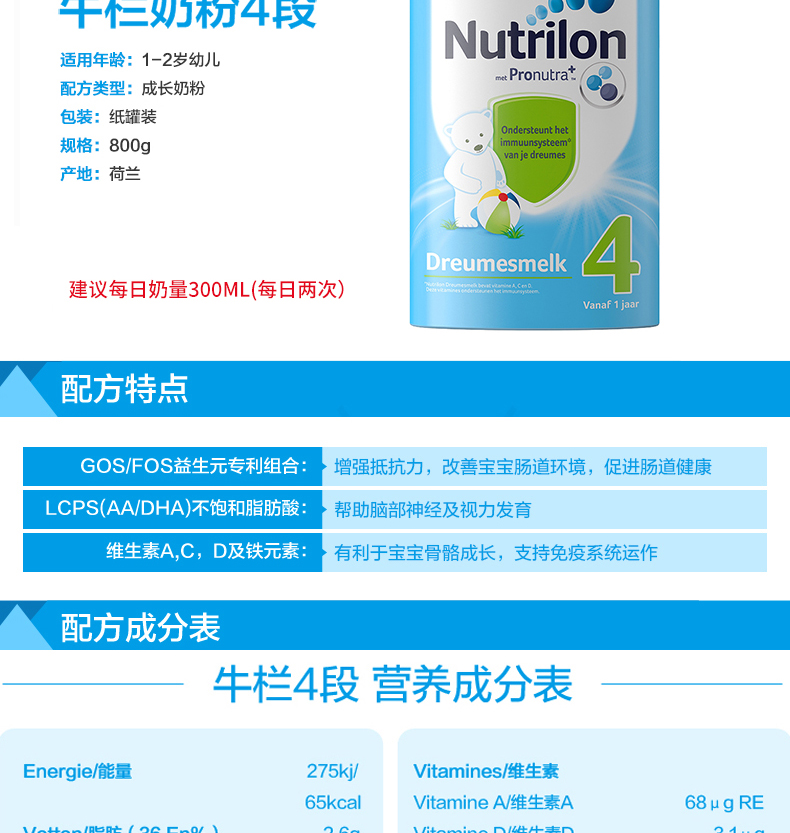 商品名称:诺优能/Nutrilon 4段婴儿奶粉一岁以上宝宝效期20年5月