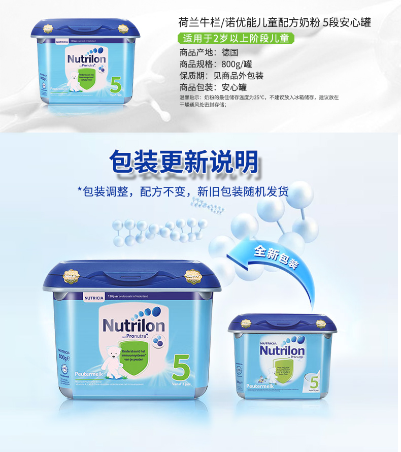 诺优能/Nutrilon 荷兰牛栏 5段奶粉安心罐2岁以上儿童进口五 诺优能婴幼儿奶粉